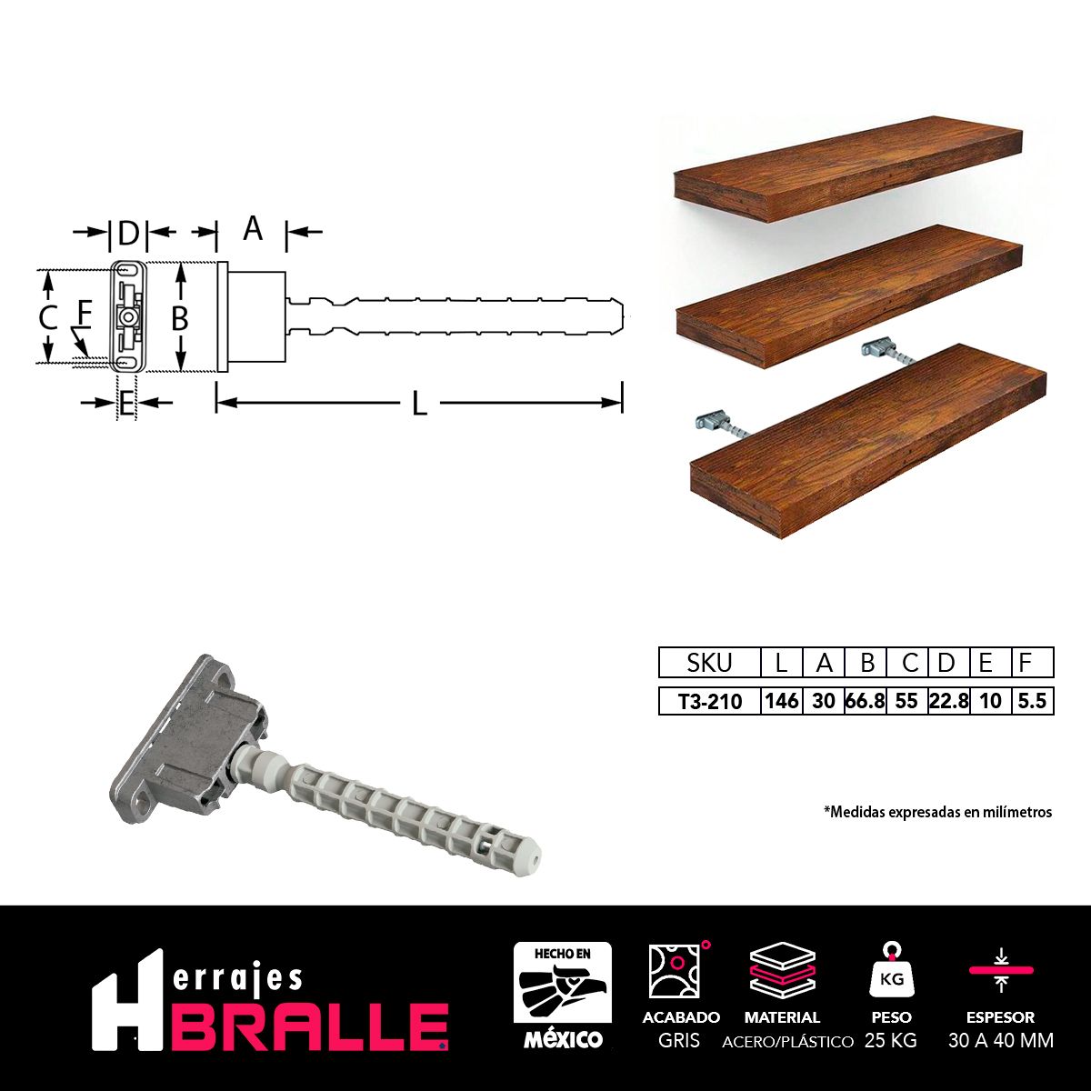 SOPORTE PARA REPISA OCULTO BICROMATADO