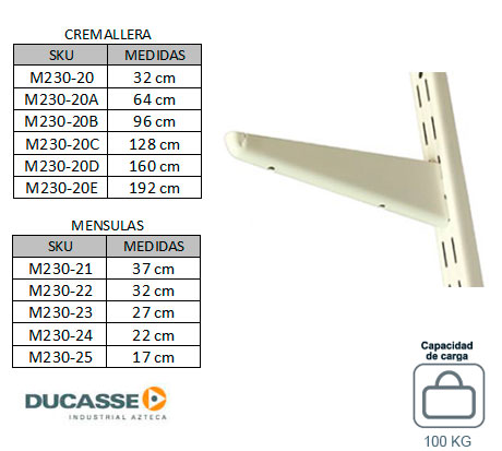 "MENSULAS Y CREMAYERAS "